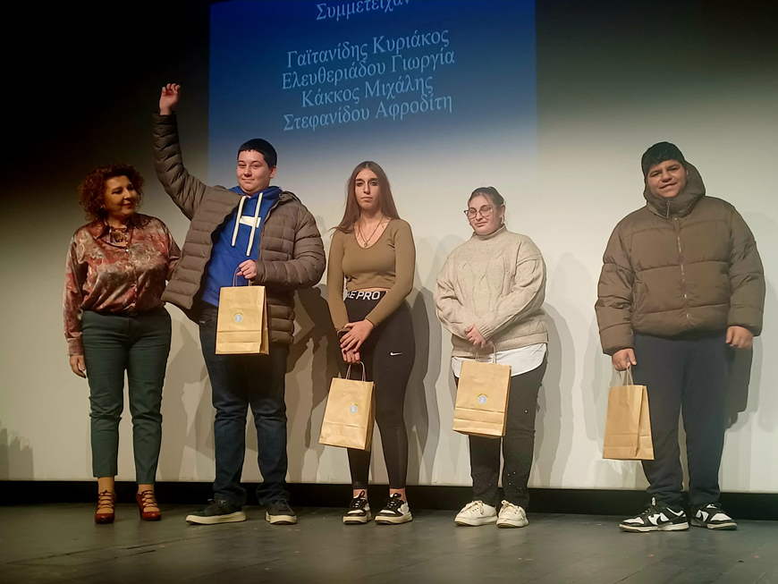 – Τέσσερις μαθητές του Ενιαίου Ειδικού Επαγγελματικού Γυμνασίου – Λυκείου Κιλκίς (ΕΝ.Ε.Ε..ΓΥ-Λ) για τη δημιουργία βίντεο, που τους χάρισε το αργυρό μετάλλιο στον διαγωνισμό της Πανελλήνιας Ένωσης Υπευθύνων Εργαστηριακών Κέντρων Φυσικών Επιστημών
