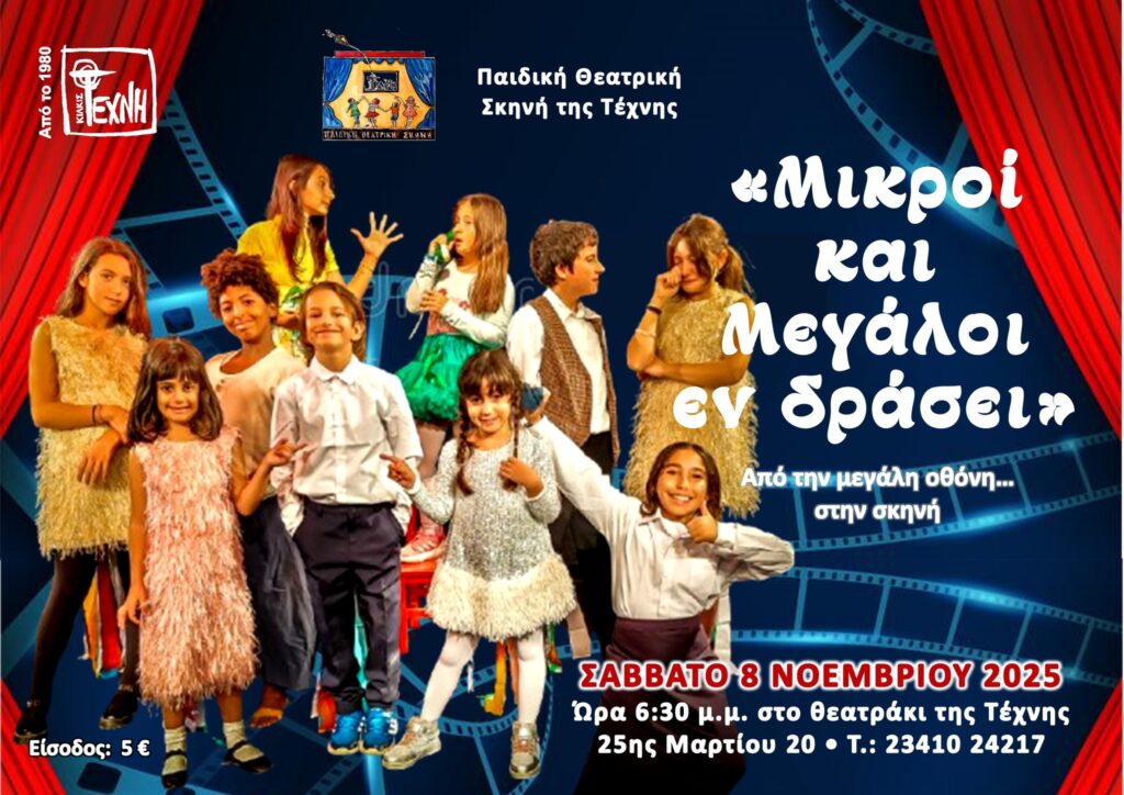 Η παράσταση «Μικροί και μεγάλοι εν δράσει»- από τη Μεγάλη Οθόνη… στη Σκηνή, που σας ενθουσίασε θα παρουσιασθεί ξανά το Σάββατο 8 Νοεμβρίου στις 6.30 μ.μ. στο θεατράκι της Τέχνης.
