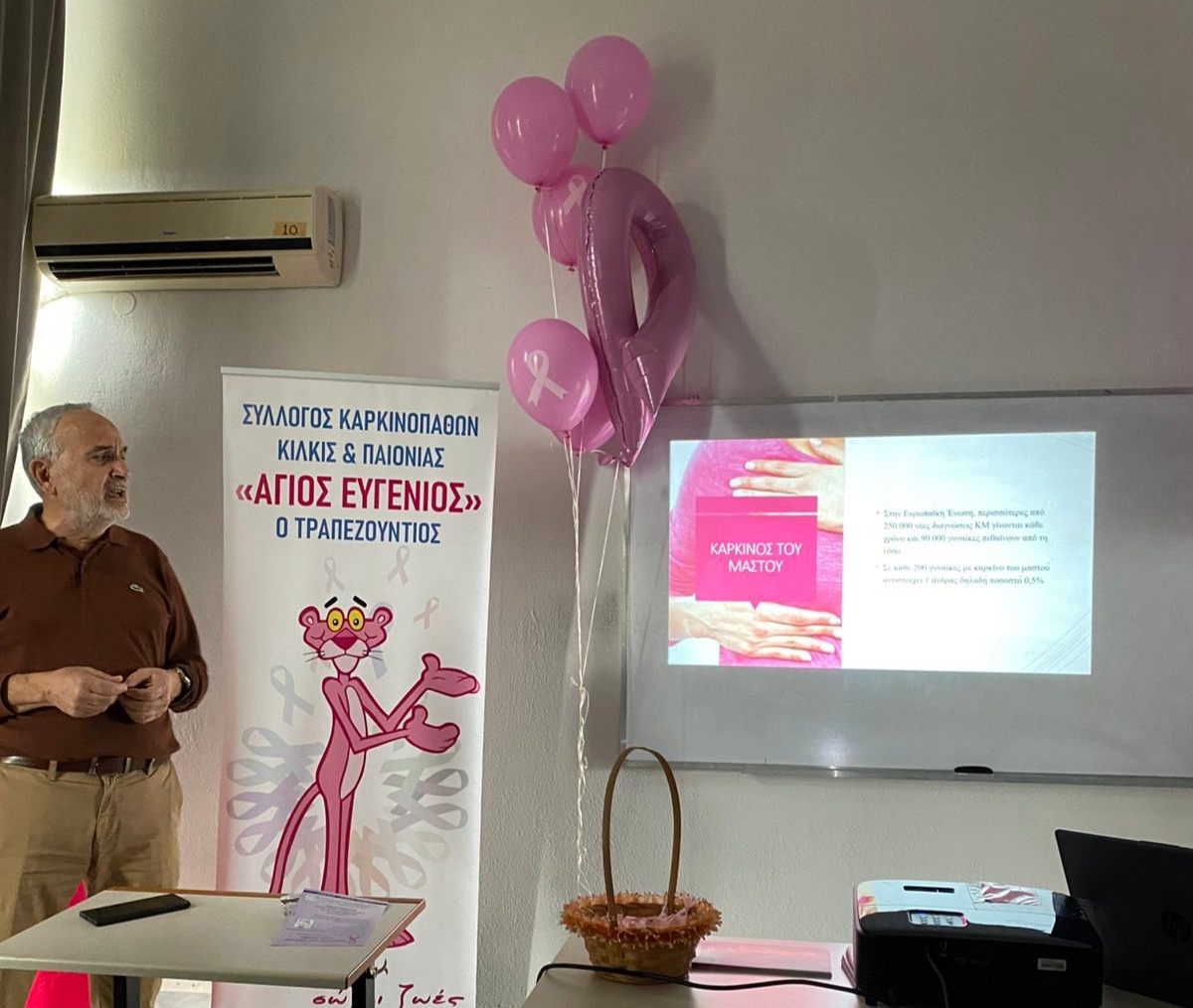 Η εκδήλωση εντάσσεται στο πλαίσιο της ενημέρωσης και ευαισθητοποίησης των φοιτητών/τριών σχετικά με θέματα πρόληψης, έγκαιρης διάγνωσης και υποστήριξης των ατόμων που νοσούν από καρκίνο του μαστού.