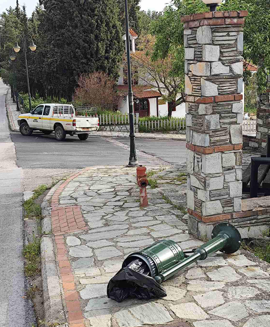 «Νέο κρούσμα βανδαλισμού καταγράφηκε το πρωί της περασμένης Παρασκευής στην περιφερειακή οδό δημάρχου Νίκου Αγγελίδη, όπου άγνωστοι ξήλωσαν από τη βάση τους τα καδάκια απορριμμάτων και τα έριξαν στο έδαφος.