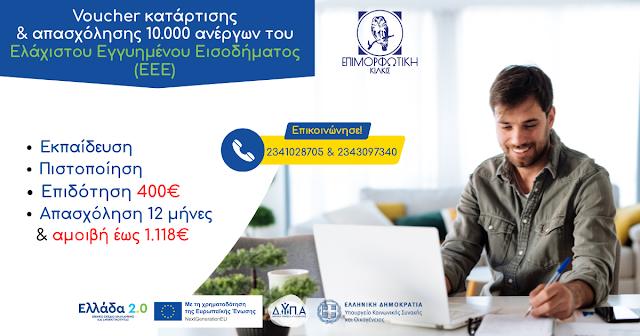 Η Επιμορφωτική Κιλκίς ενημερώνει ότι μέσω του προγράμματος μπορούν να επωφεληθούν διπλά οι άνεργοι με εκπαίδευση-επιδότηση-εργασία και οι επιχειρήσεις με […]