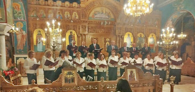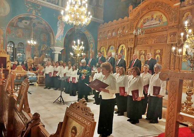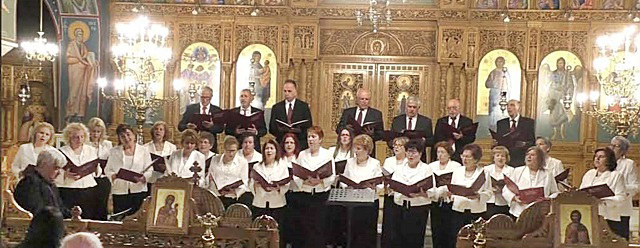 Υπό τη διεύθυνση του μαέστρου Γιάννη Ζγούρα και υπό τους ήχους πιάνου έψαλε τέσσερις ύμνους: