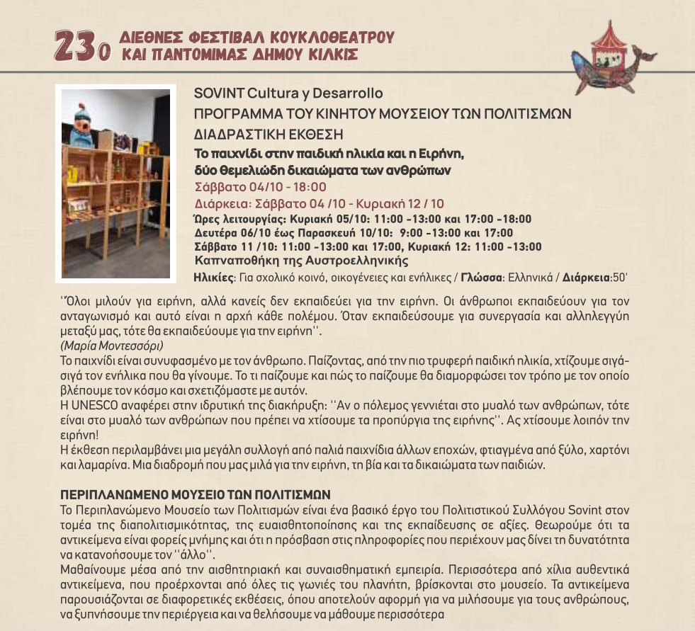 Το πρόγραμμα του 23ου Φεστιβάλ Κουκλοθεάτρου και Παντομίμας Δήμου Κιλκίς