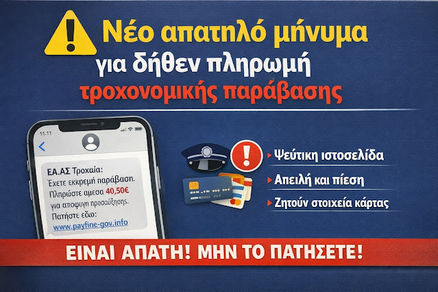 Με νέο μήνυμα SMS που αποστέλλεται σε κινητά τηλέφωνα, επιτήδειοι προσπαθούν να εξαπατήσουν τους πολίτες μέσω ψευδών ειδοποιήσεων περί δήθεν […]