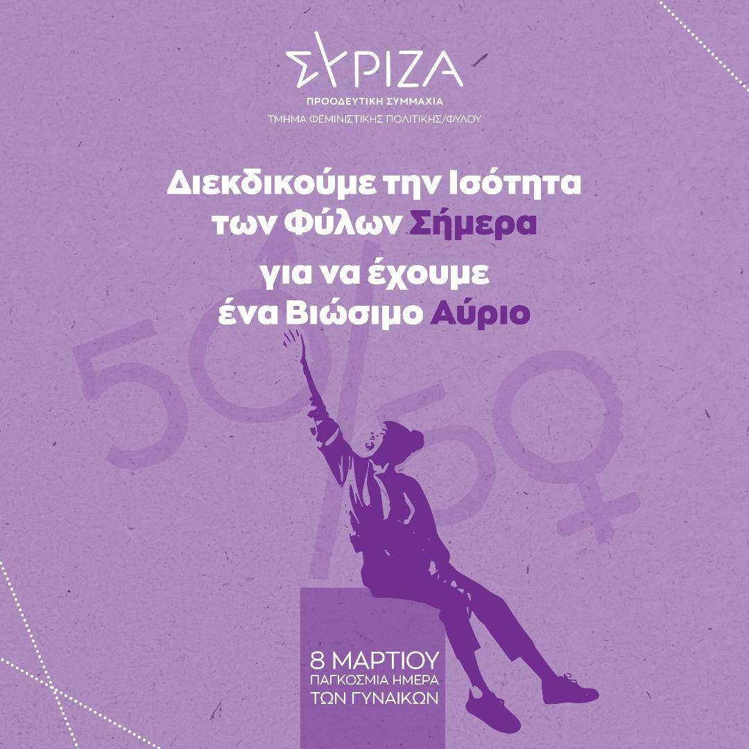 Δήλωση της αν. Τομεάρχισσας Δικαιοσύνης του ΣΥΡΙΖΑ – ΠΣ αρμόδιας για θέματα Ισότητας, Ειρήνης Αγαθοπούλου, για την 8η Μάρτη, Παγκόσμια Ημέρα […]