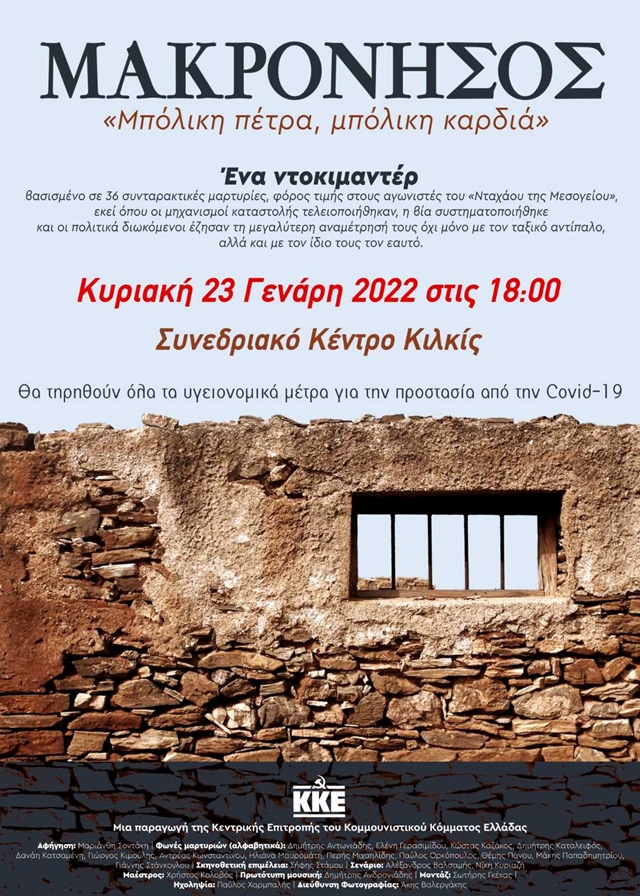 Προβλήθηκε το ντοκιμαντέρ από την ΤΕ Κιλκίς του ΚΚΕ: “Μακρόνησος, μπόλικη πέτρα-μπόλικη καρδιά”