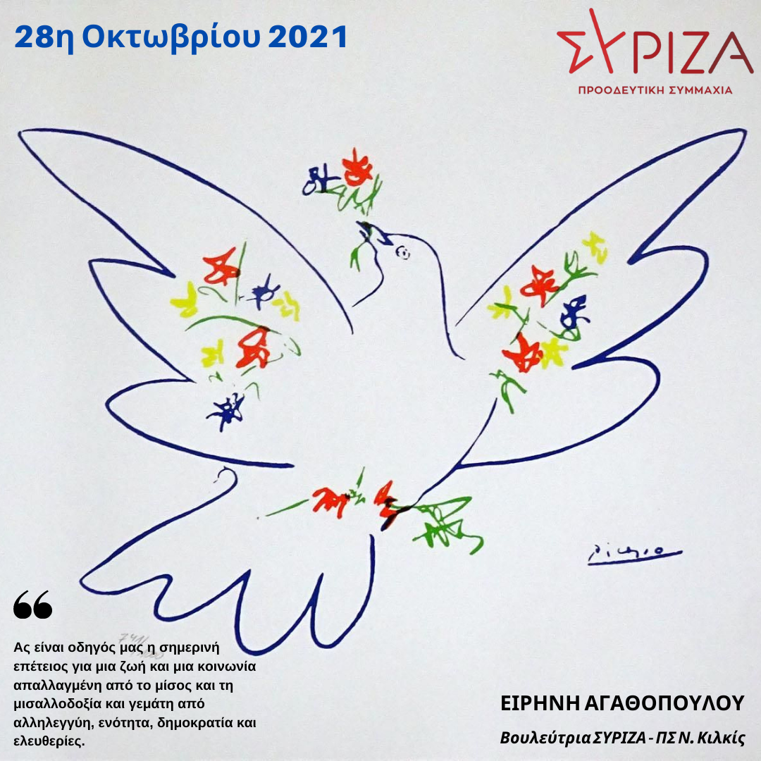 Μήνυμα βουλεύτριας ΣΥΡΙΖΑ – ΠΣ Κιλκίς Ε.Αγαθοπούλου – 28η Οκτωβρίου 2021