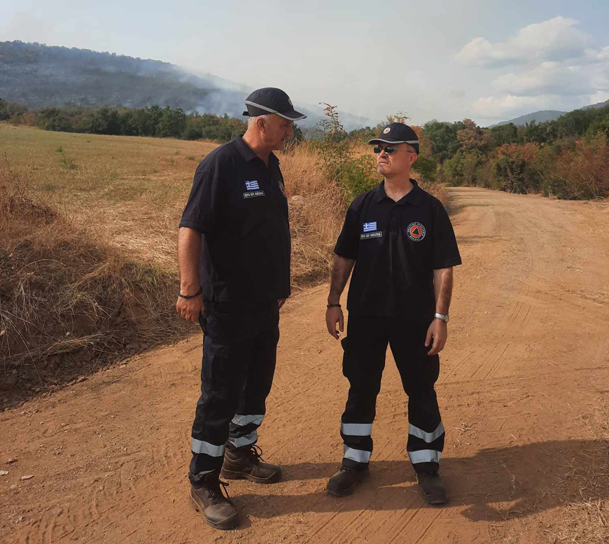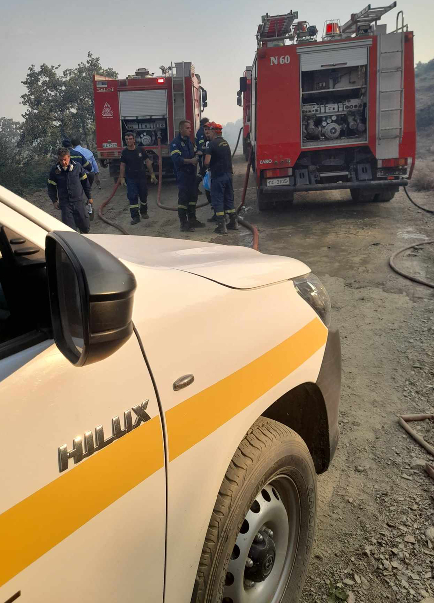 Ο αντιπεριφερειάρχης Ανδρέας Βεργίδης ο αναπληρωτής προϊστάμενος του τμήματος πολιτικής προστασίας Θεόδωρος Κοκκίνης και το στέλεχος του τμήματος Κλεαρέτη Πασσαλίδου βρέθηκαν στο σημείο όπου επιχειρούσαν επίγειες και εναέριες δυνάμεις για την κατάσβεση της πυρκαγιάς.