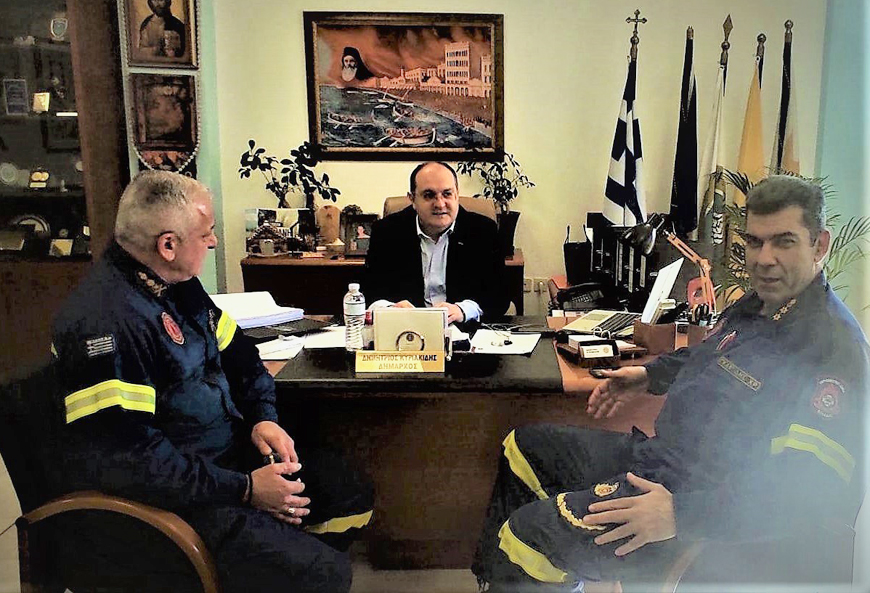 Η συζήτηση στην πρώτη εθιμοτυπική συνάντηση των δύο ανδρών περιστράφηκε στην διάρθρωση του τομέα Πολιτικής Προστασίας του δήμου Κιλκίς και στα μηχανήματα έργου που διαθέτει για τη διαχείριση των έντονων καιρικών φαινομένων και της αντιπυρικής προστασίας. Πέραν της επιχειρησιακής του δύναμης, ο δήμαρχος Κιλκίς σημείωσε ότι ο δήμος Κιλκίς προτίθεται να συνεισφέρει με δύο ακόμη οχήματα (βυτιοφόρο και μπουλντόζα) που προμηθεύεται προσεχώς από το πρόγραμμα ‘’Φιλόδημος ΙΙ’’ για τη διευκόλυνση των αναγκών της Πυροσβεστικής Υπηρεσίας.