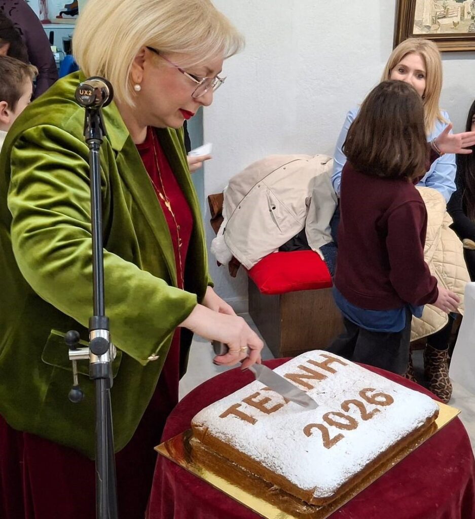 Την βασιλόπιτα της έκοψε η “Τέχνη” Κιλκίς το Σάββατο 31.1.26 στα γραφεία της, συντροφιά με καταπληκτική μουσική, με κρασάκι και μεζεδάκια με τυχερή του φλουριού – του πίνακα του Παναγιώτη Τοπαλίδη – το μέλος της και της θεατρικής σκηνής της Σοφία Στρατινάκη.