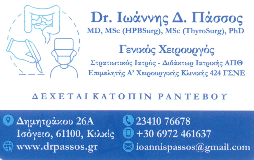 Την έναρξη λειτουργίας του νέου ιδιωτικού χειρουργικού ιατρείου του στην πόλη που μεγάλωσε το Κιλκίς ανακοίνωσε ο ιατρός Ιωάννης Δ. Πάσσος.