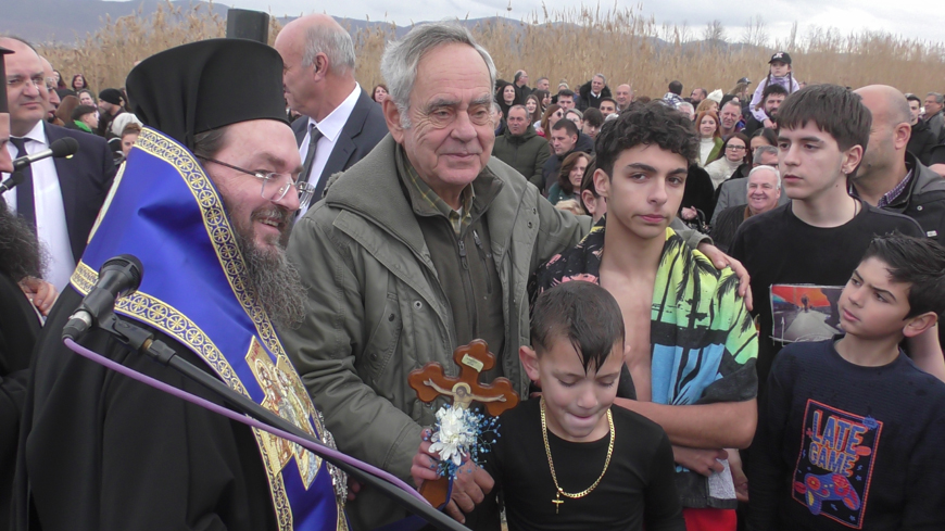 Στα κρύα νερά του Αξιού ποταμού για τους δύο σταυρούς έπεσαν τρεις νεαροί με τα αδέλφια Οδυσσέα και Ιορδάνη Καραγιάννη να τον πιάνουν.