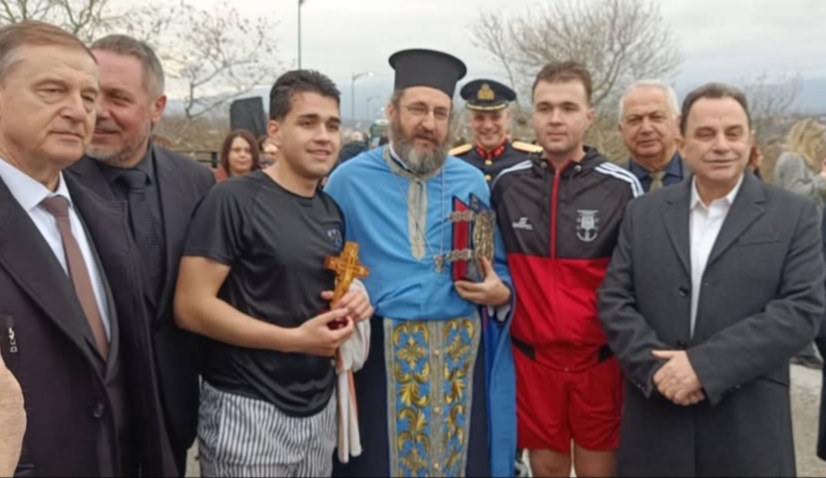 Στα κρύα νερά του Αξιού ποταμού για τους δύο σταυρούς έπεσαν τρεις νεαροί με τα αδέλφια Οδυσσέα και Ιορδάνη Καραγιάννη να τον πιάνουν.